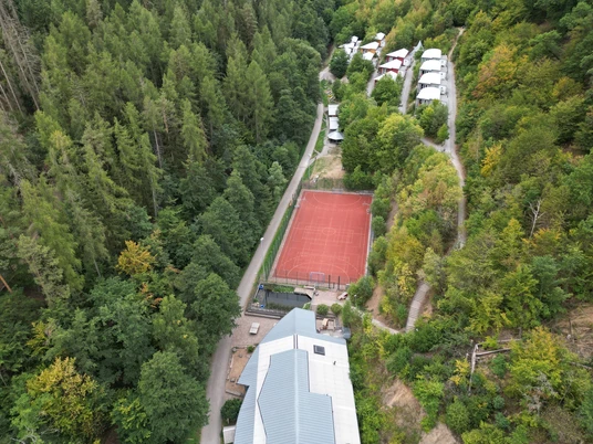Das Außengelände des Camps ist der ideale Ort für erlebnis- und umweltpädagogische Aktivitäten. Insbesondere teambildende Outdoor-Aktivitäten stehen hier im Vordergrund. Neben der natürlichen Umgebung mit Wald und Wasser sind zahlreiche feste Installationen vorhanden, z.B. ein Niedrigseilgarten, ein 50m langes Kletternetz, eine Teamwippe, ein Kletterparkour.