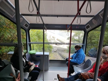 Die moderne Standseilbahn bringt jährlich weit über 10.000 Gäste bequem nach oben auf den Peterskopf und auch gerne wieder nach unten.